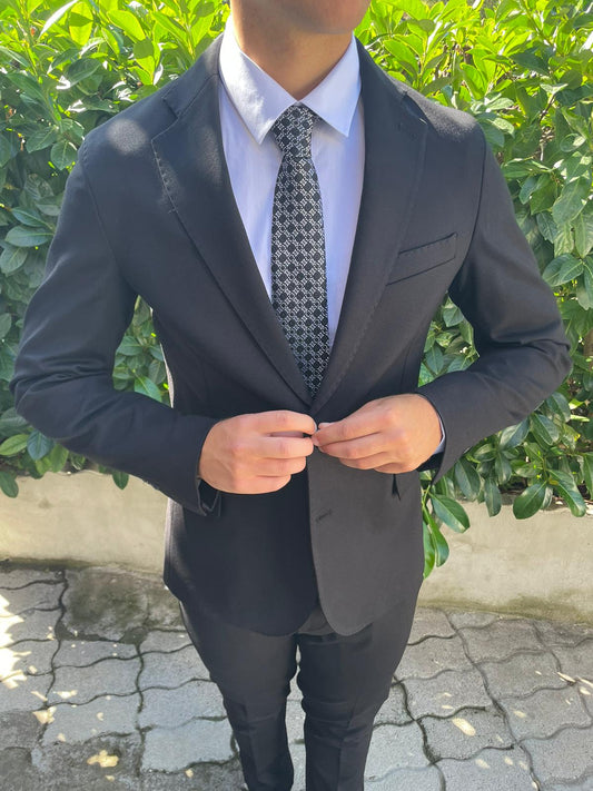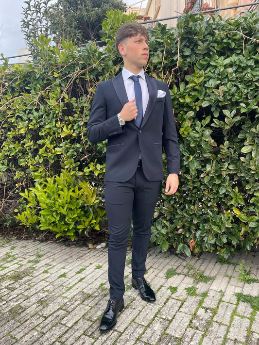 Abito 2 pezzi completo revers di raso tessuto elasticizzato mod. Hamsik S17 Milano