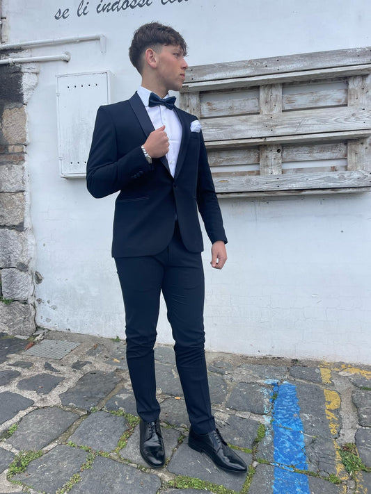 Promo di NataleAbito uomo smoking con reverse di velluto blu