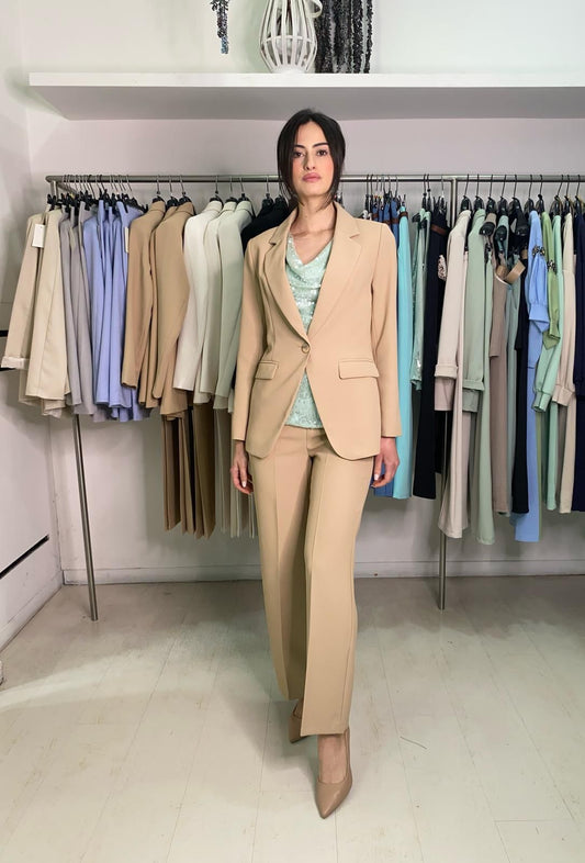 Promo di NataleTailleur monopetto pantalone palazzo con elastico in vita