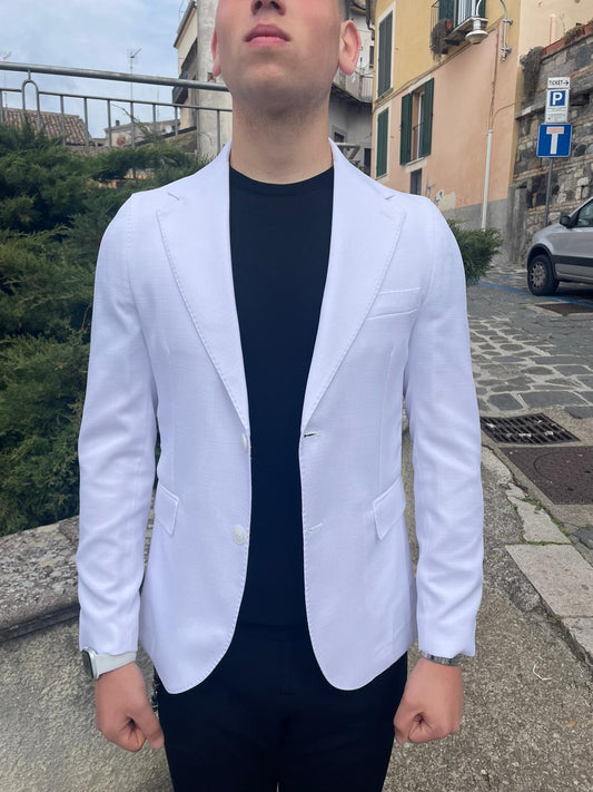 Giacca uomo in tessuto nido d’ape, modello blazer sfoderato dal taglio sartoriale