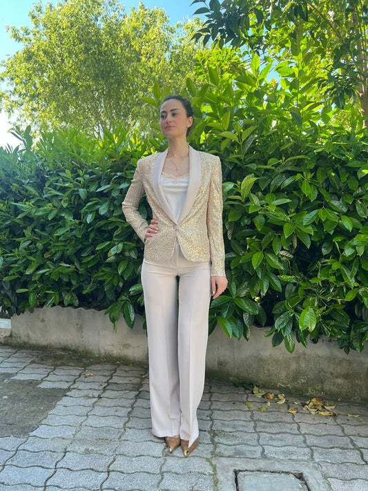 Promo di NataleCompleto Donna Giacca Paillettes e Pantalone Largo in Cady