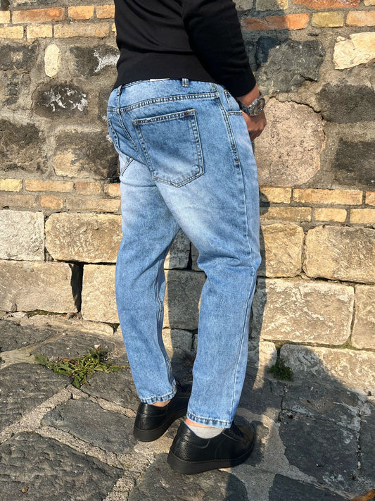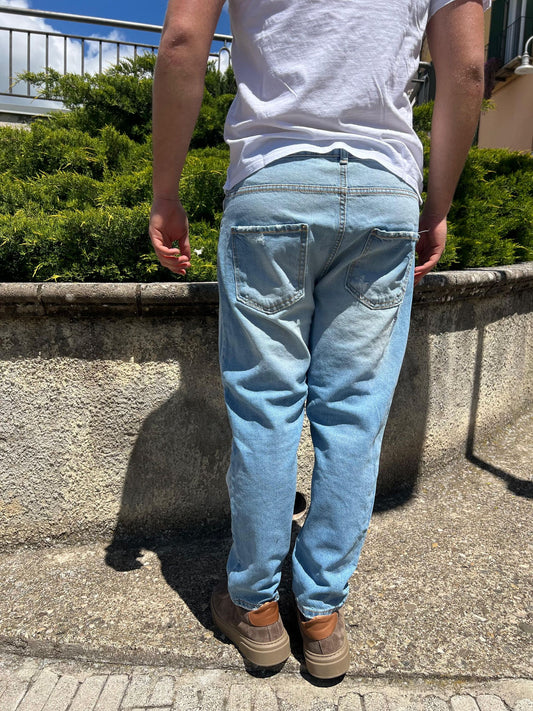 Promo di NataleJeans Uomo "Mick" – Strappi, Toppe e Lavaggio Chiaro Capri