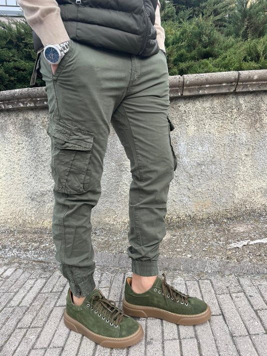 Promo di NatalePantalone cargo uomo cotone con elastico e zip