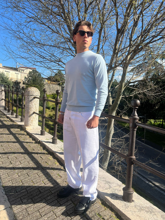 Maglia uomo girocollo sartoriale realizzata con filato pregiato composto all’80% da lana.