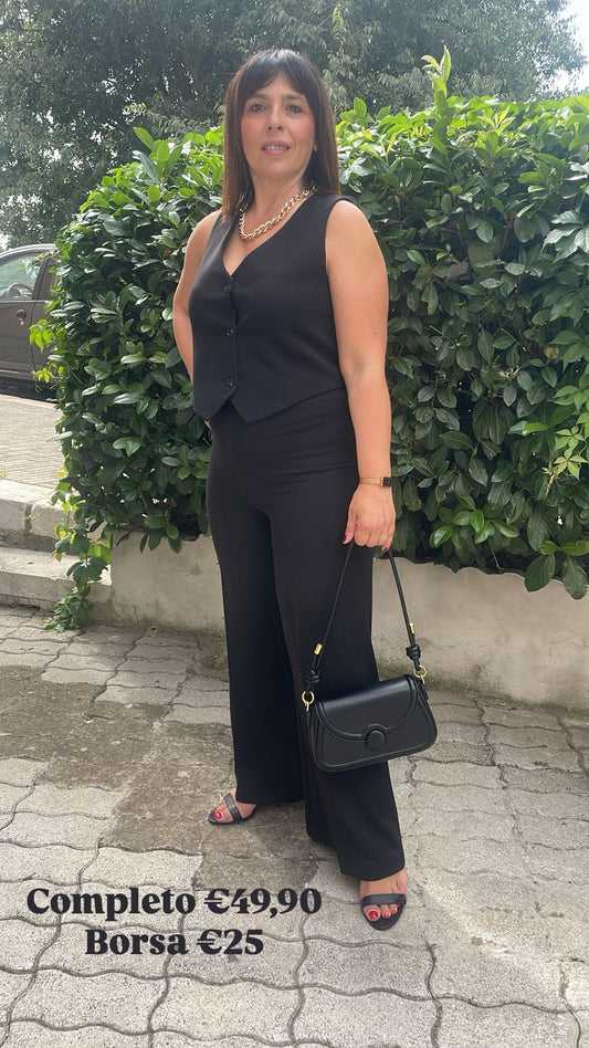completo 2 pezzi gilet pantalone palazzo