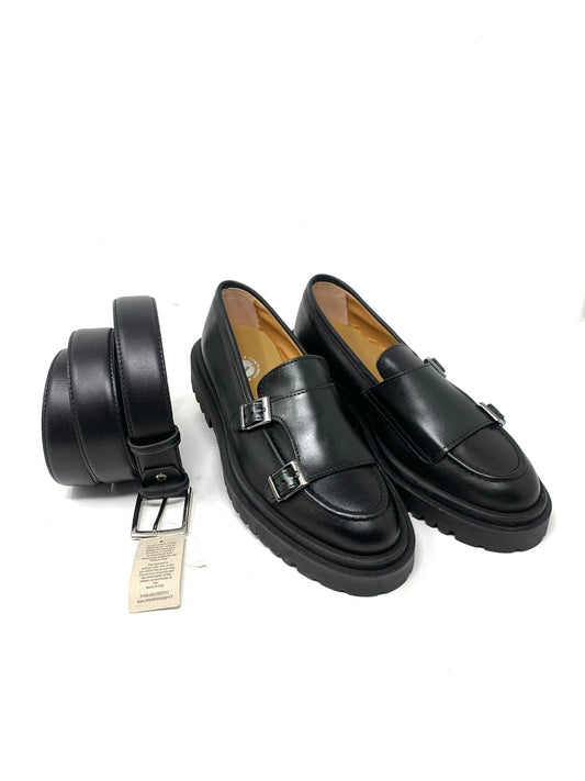 Mocassino uomo doppia fibbia in vera pelle bottalata effetto vintage made in Italy fondo vibram