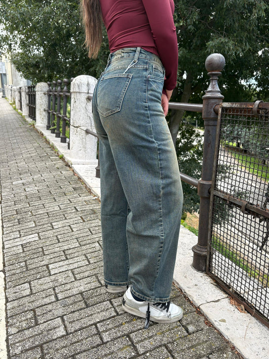 Jeans Donna Baggy con Piegone – Lavaggio Vintage