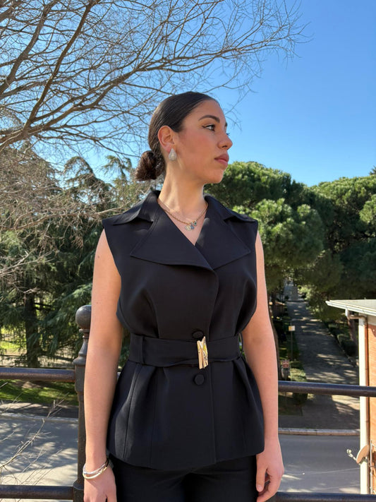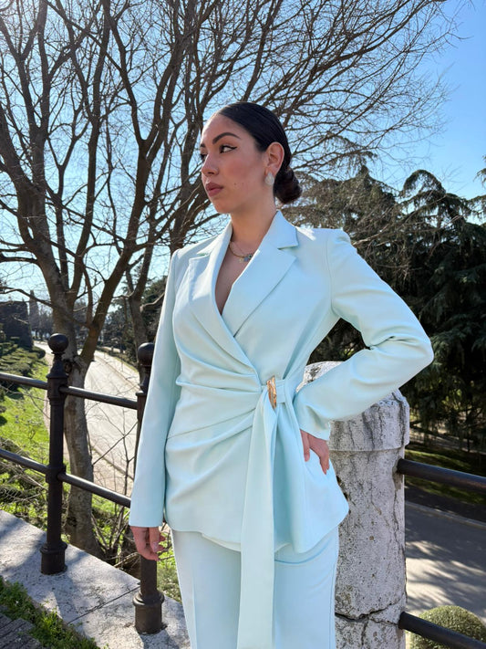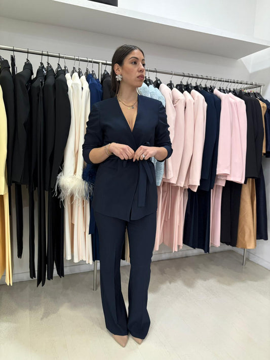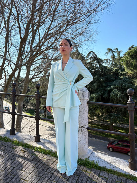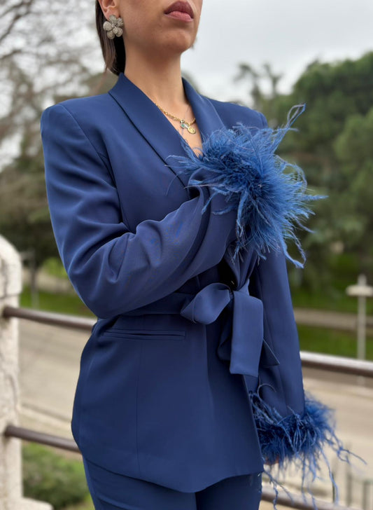 Completo Donna Giacca con Cintura e Boa – Pantalone Palazzo