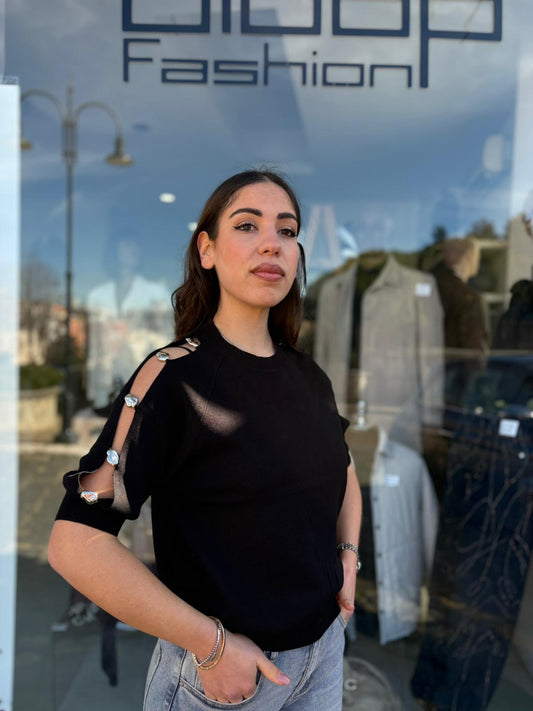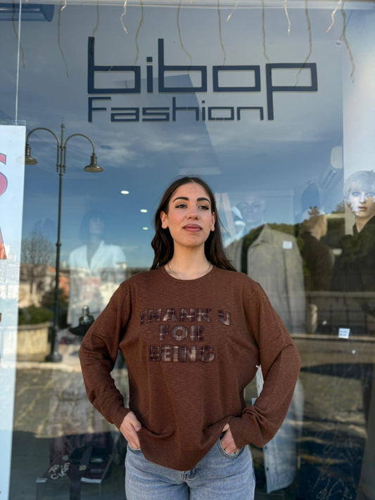 Maglia in Filo Traforata con Scritta “Thank U For Being”