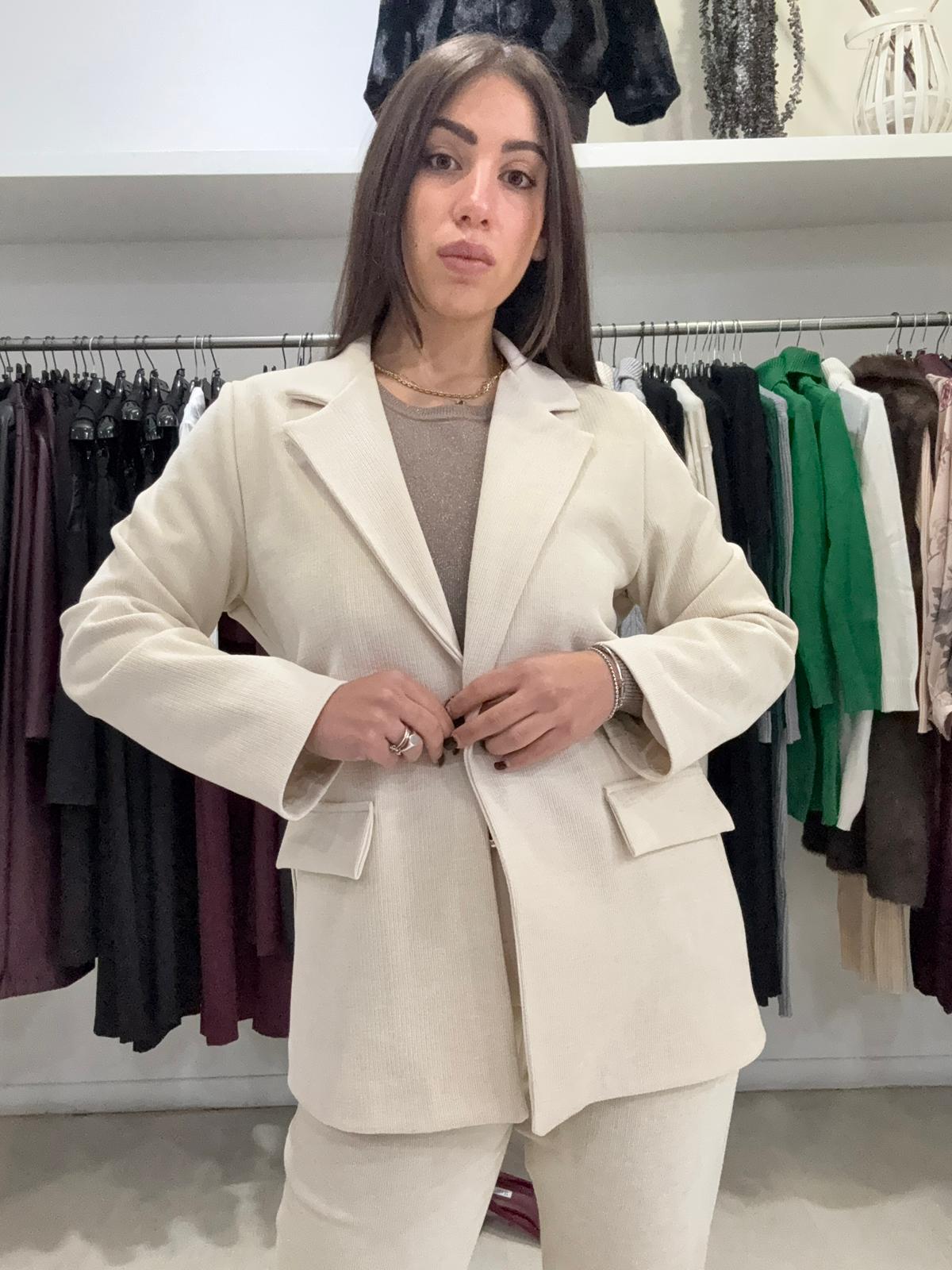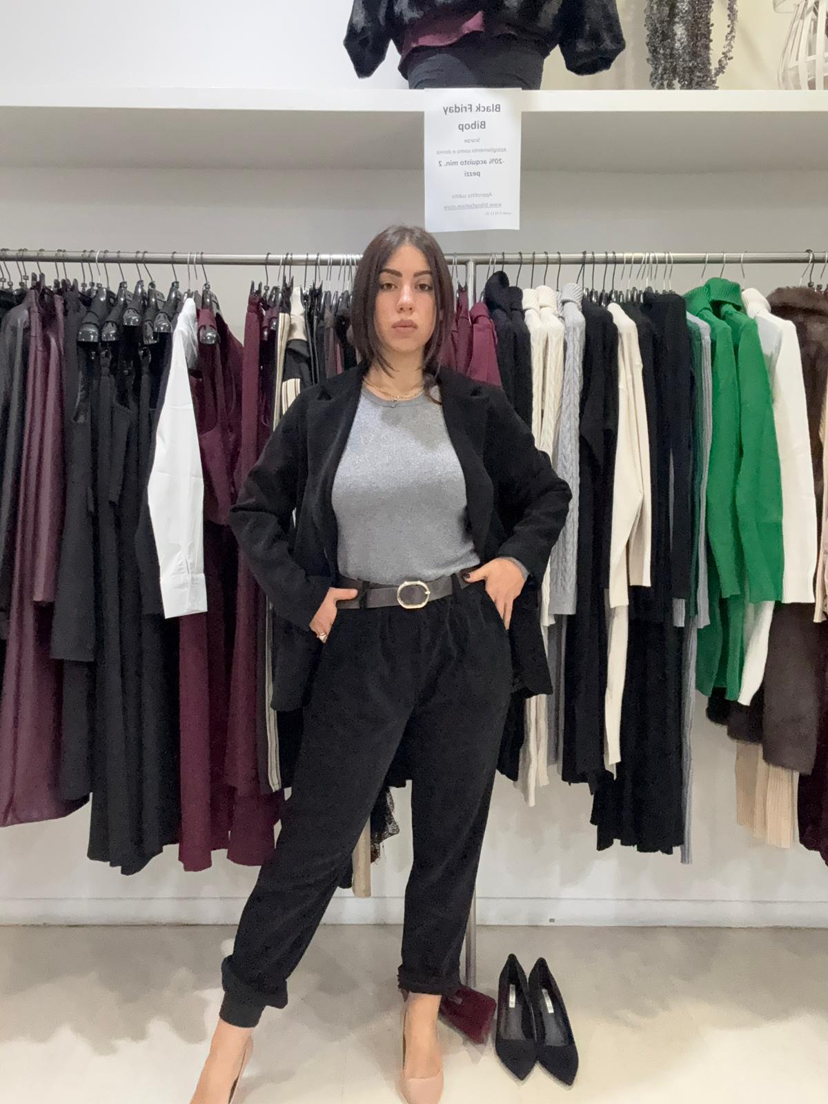 Elegante e versatile, in morbido velluto con vestibilità over. Perfetta da abbinare a look casual o più sofisticati, ideale per un tocco di stile senza rinunciare al comfort.