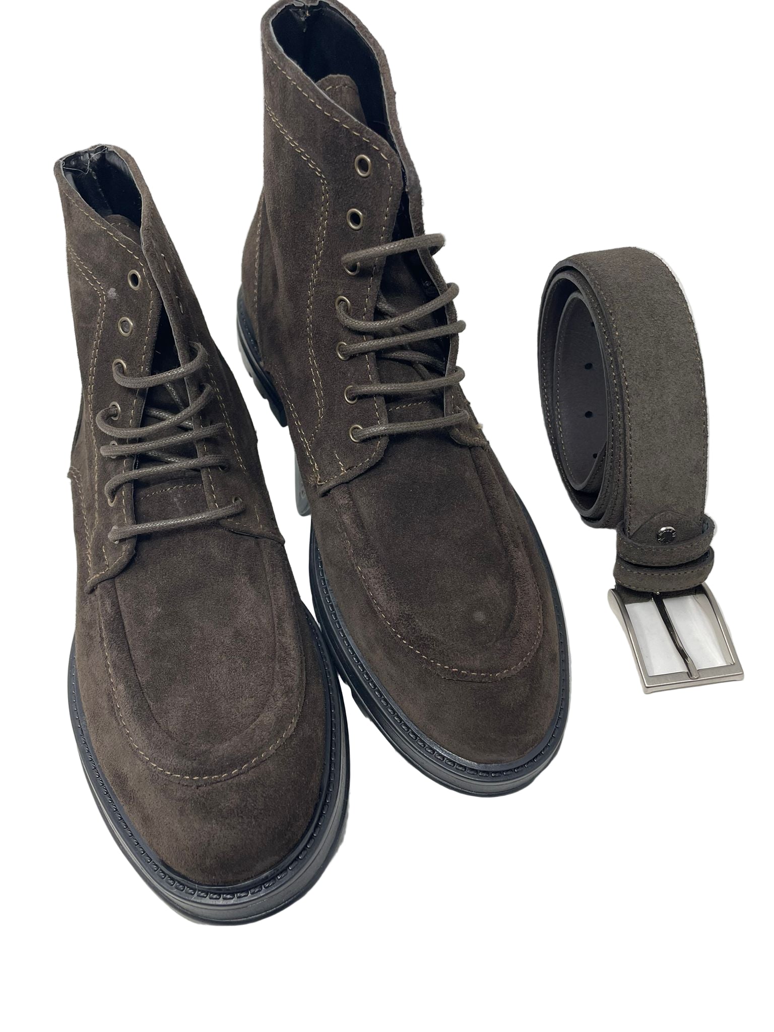 Scarpa modello ingegnere cucita a mano in vera pelle scamosciata made in italy