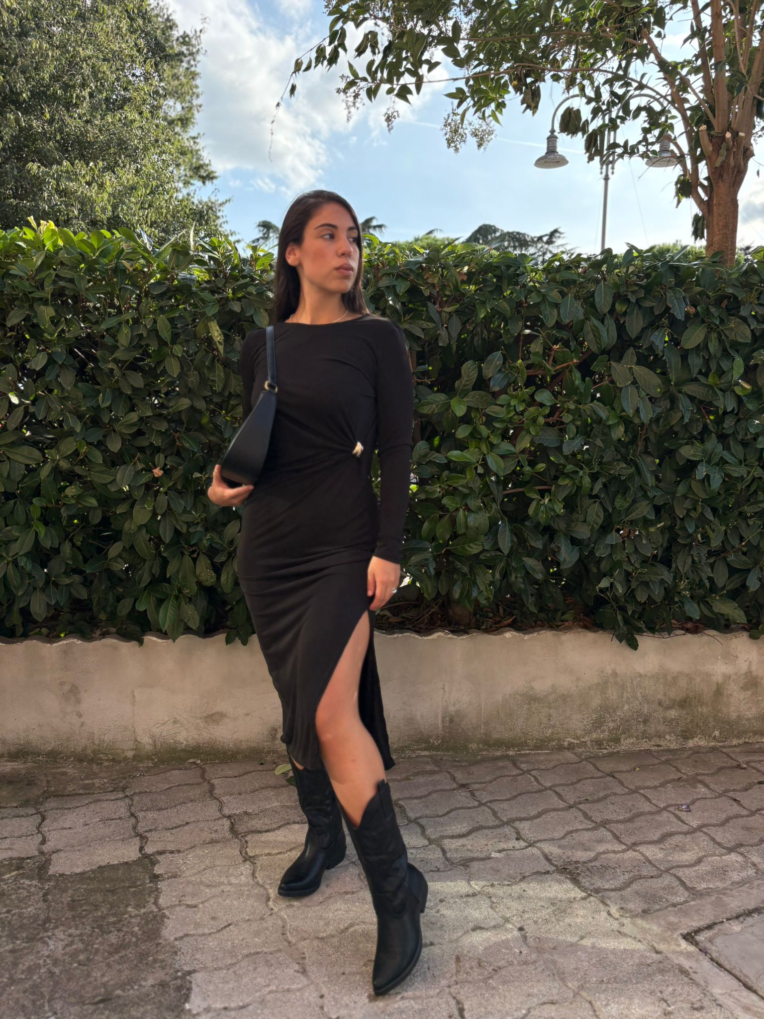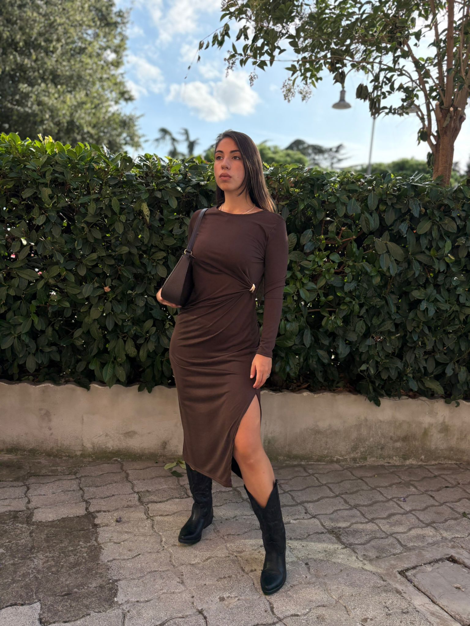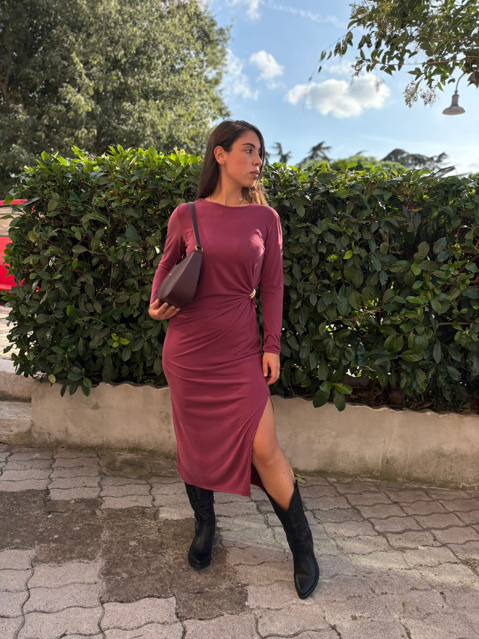 Abito lungo con fibbia e spacco laterale