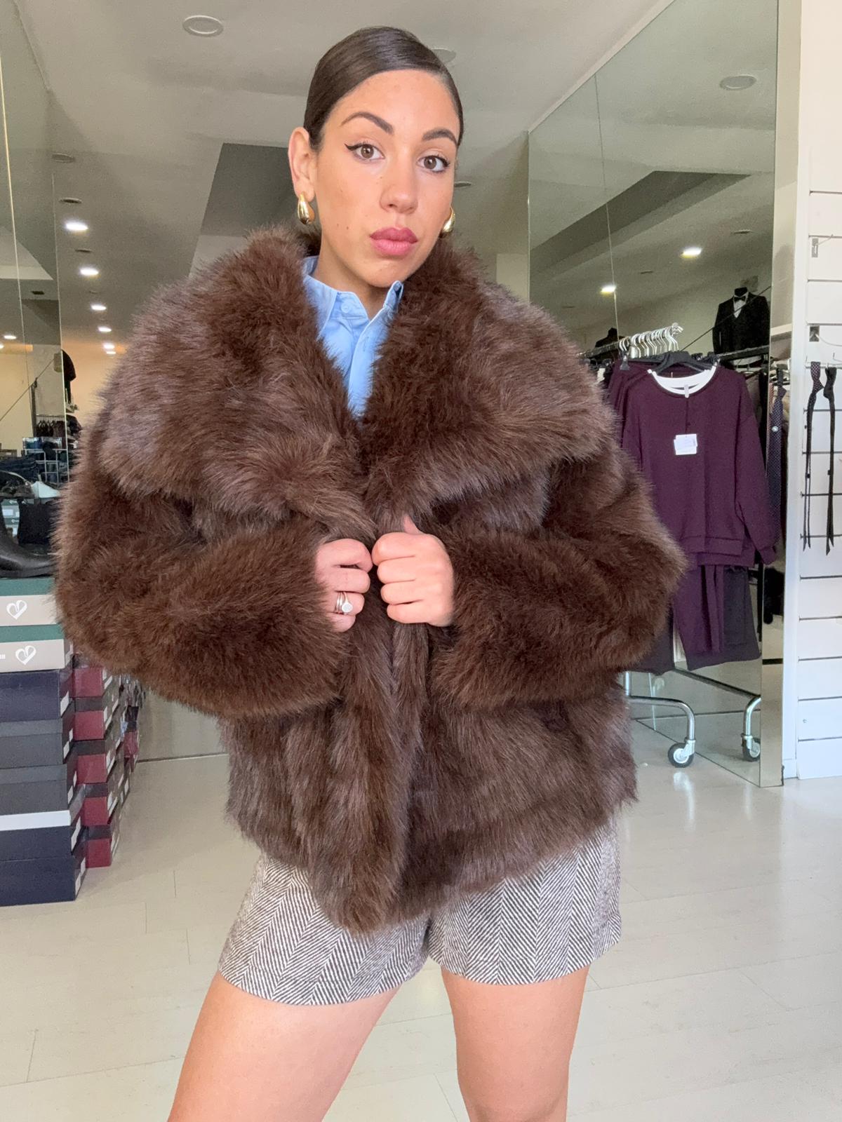Avvolgente, morbida e super chic. Questa giacca in eco pelliccia con collo sciallato è il capo perfetto per affrontare la stagione fredda con eleganza.