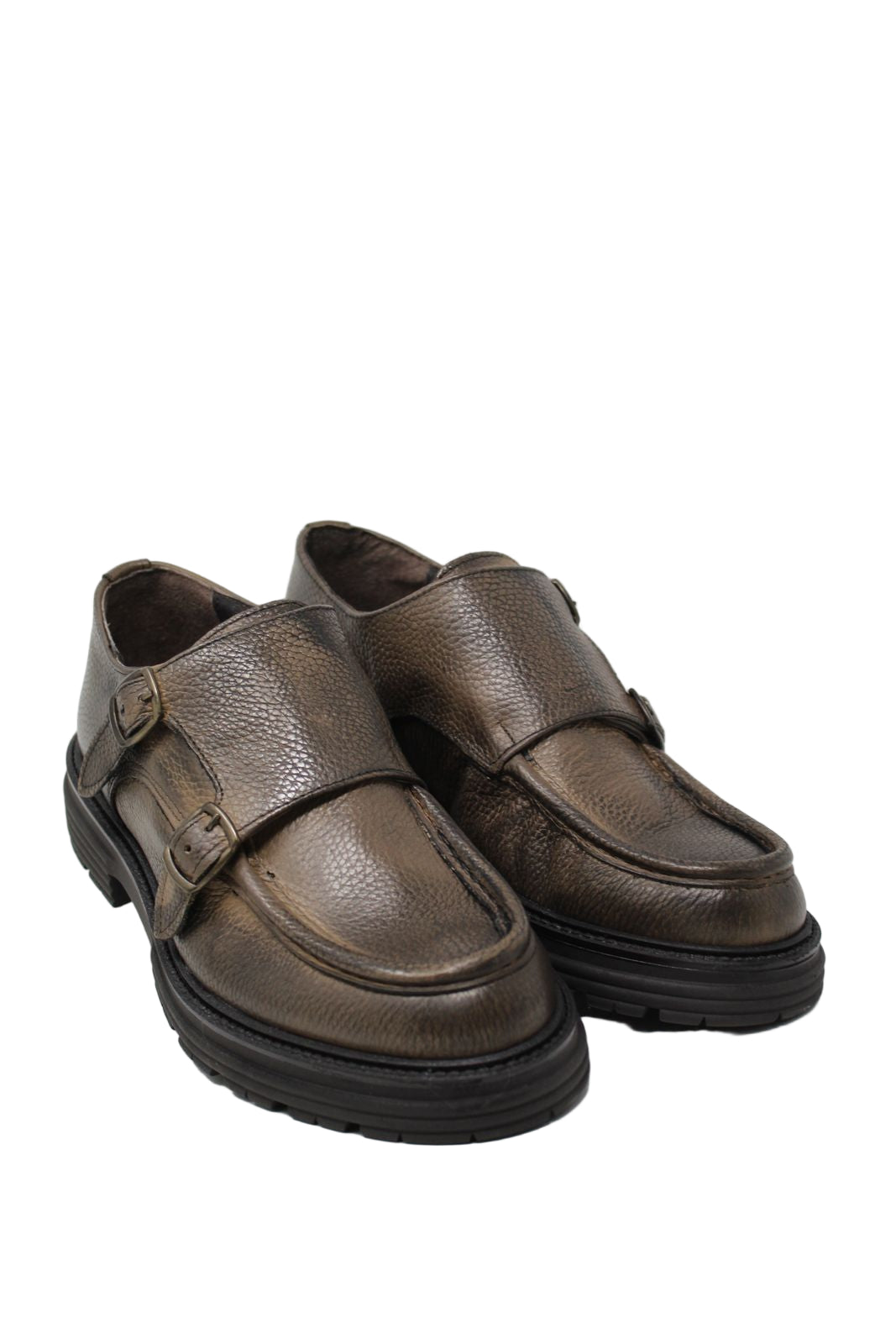 Mocassino uomo doppia fibbia in vera pelle bottalata effetto vintage made in Italy fondo vibram