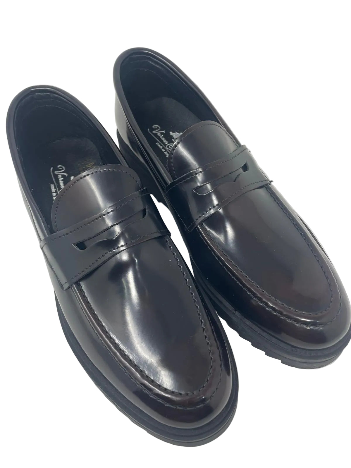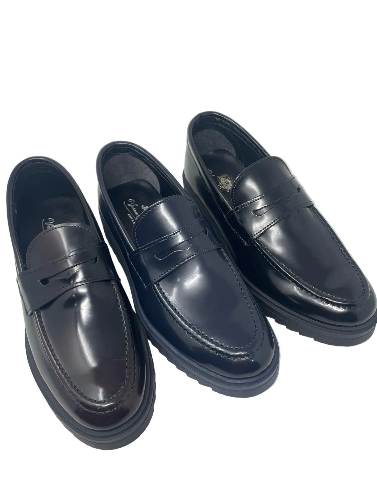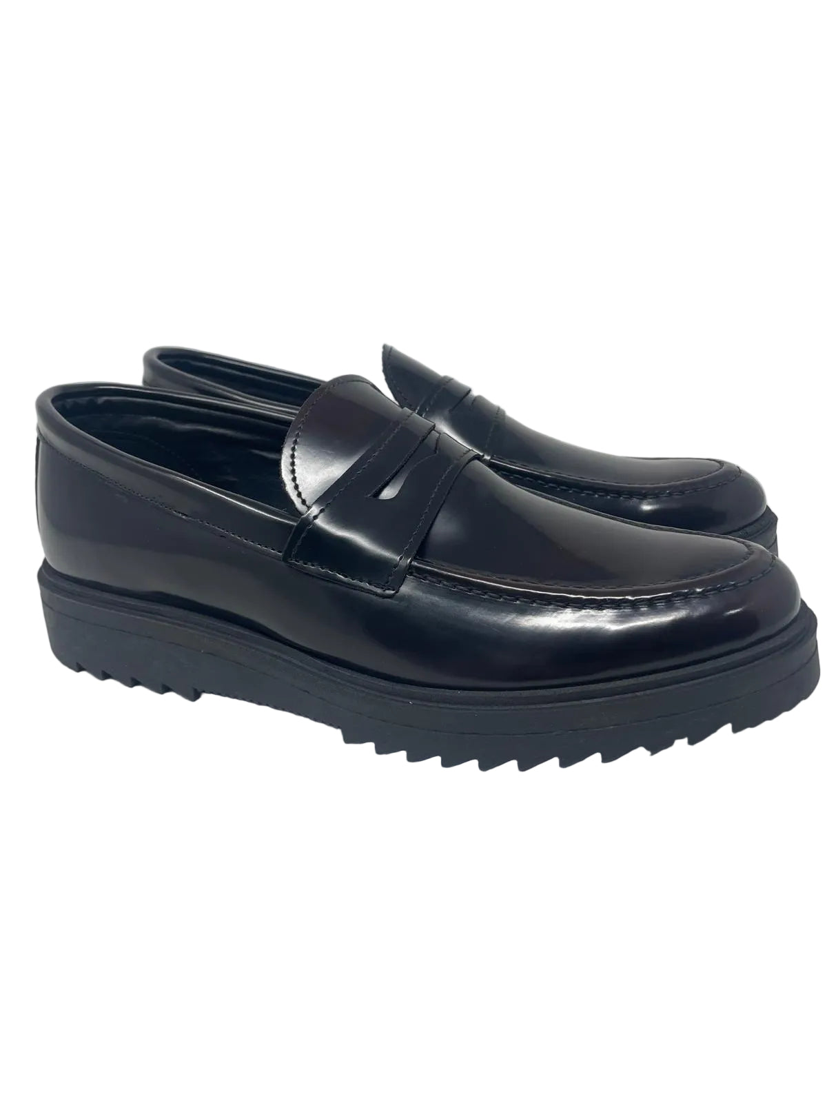 Il mocassino vernice con fondo gomma dentato è una calzatura elegante che unisce la lucentezza e la raffinatezza della vernice alla funzionalità di una suola in gomma con motivo dentato. Il design del mocassino è classico e sofisticato, mentre il fondo gomma dentato garantisce una maggiore aderenza e resistenza, offrendo una camminata sicura e confortevole. Perfetto per chi cerca un mix di stile e praticità, questa scarpa è ideale per le occasioni formali ma può essere anche facilmente adattata a look più casual.