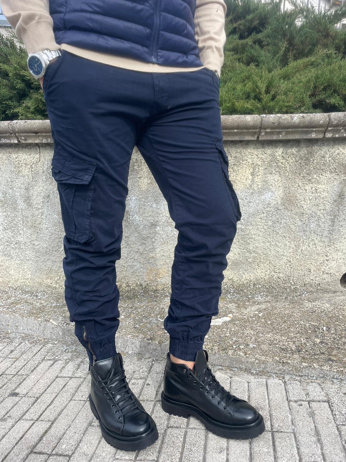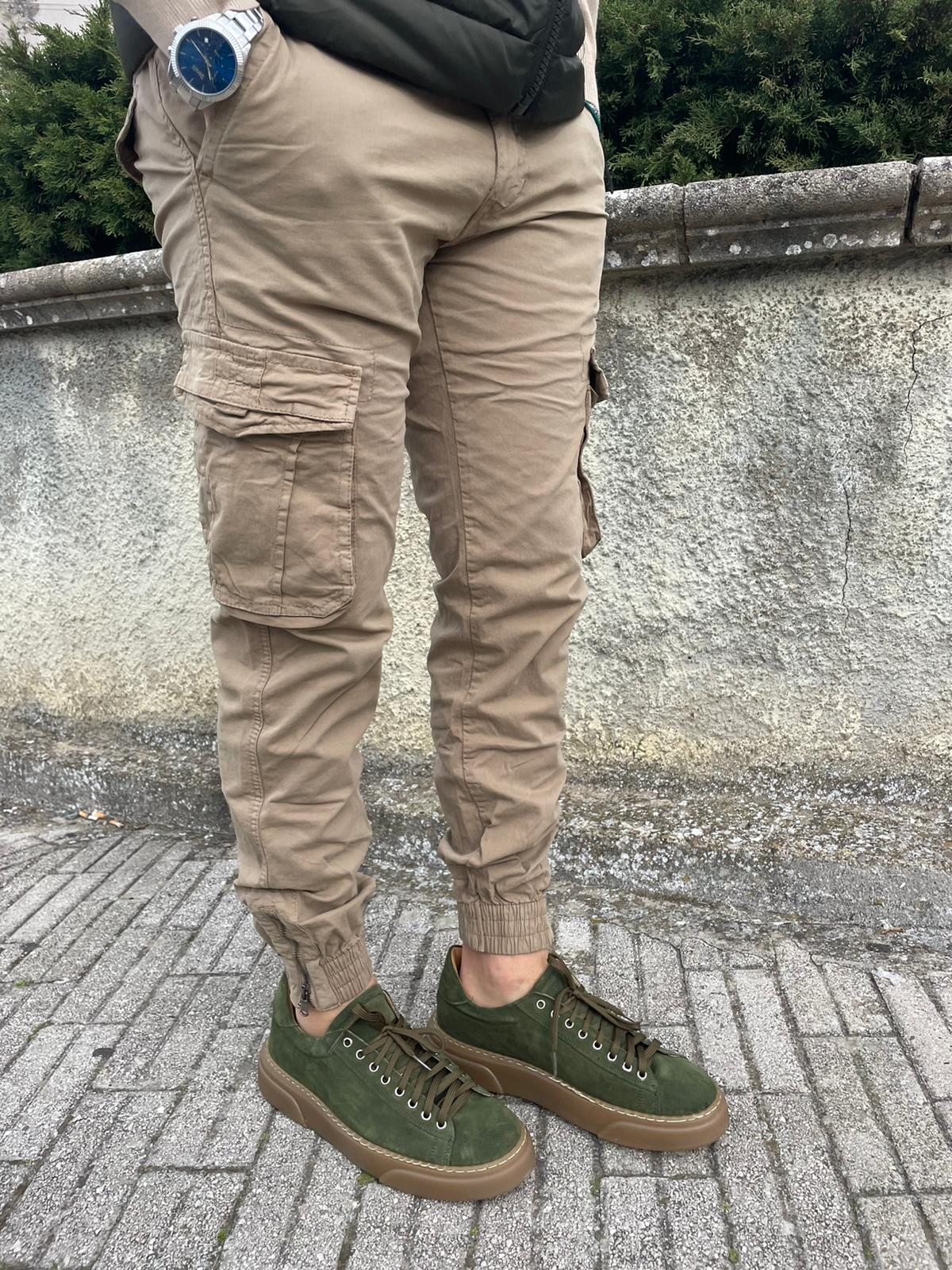 Pantalone cargo uomo cotone con elastico e zip